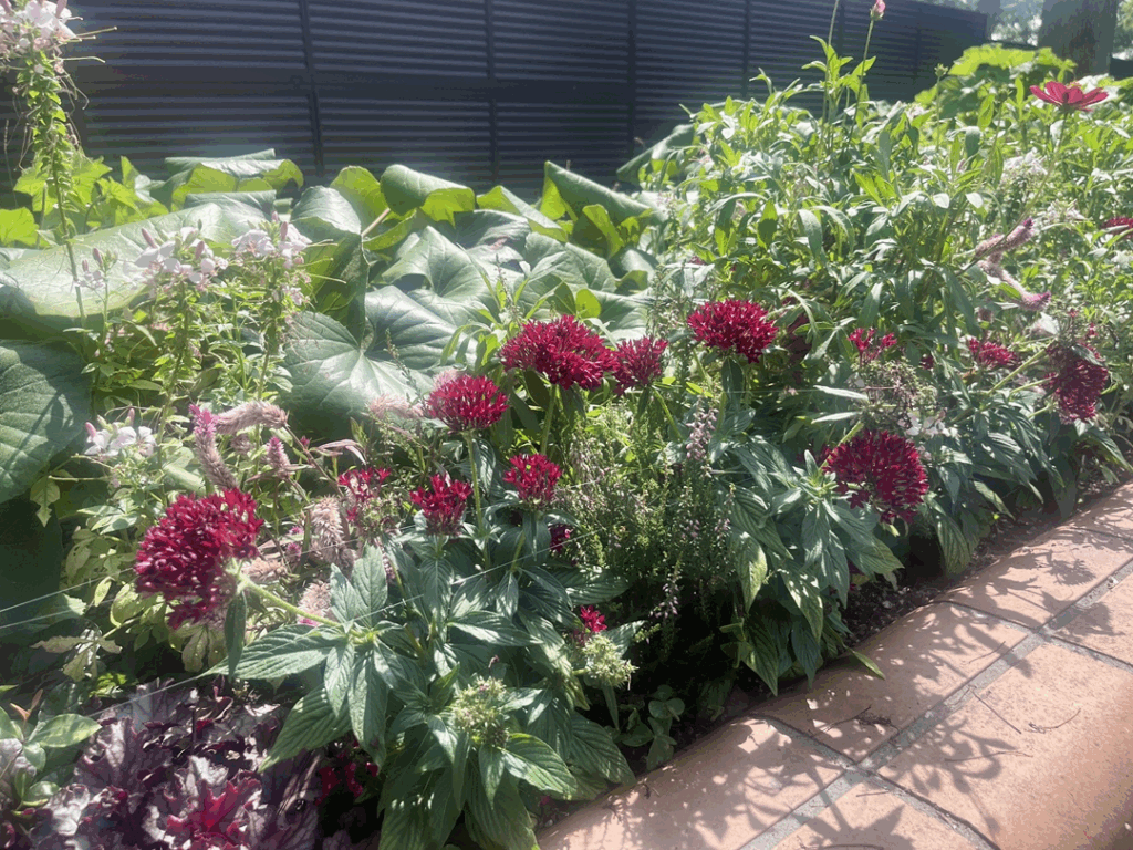 夏に向けて植え替えた園内花壇のお花たちがどんどん大きくなり