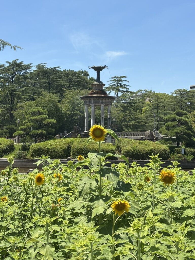 順調に咲き進んでいます!🌻噴水塔をバックに撮るのがおすすめ📸🌟