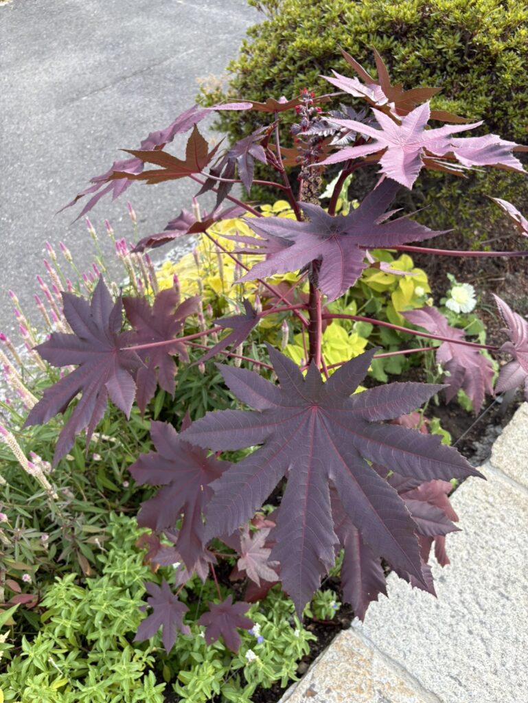 トウゴマは30~40cmの大きな葉を持ち、2~3mにまで生長する植物です!