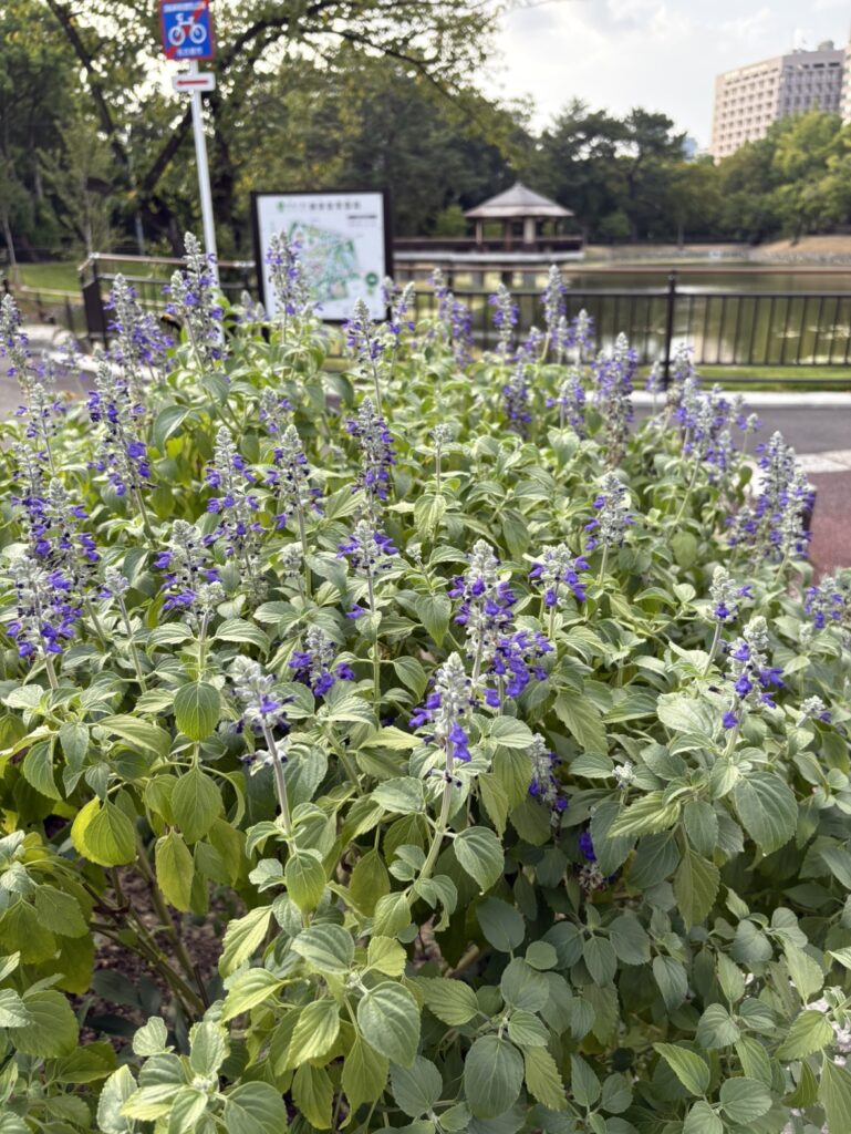 ちなみに、ラベンダーは同じ花壇内のサルビアの隣に植えられています。