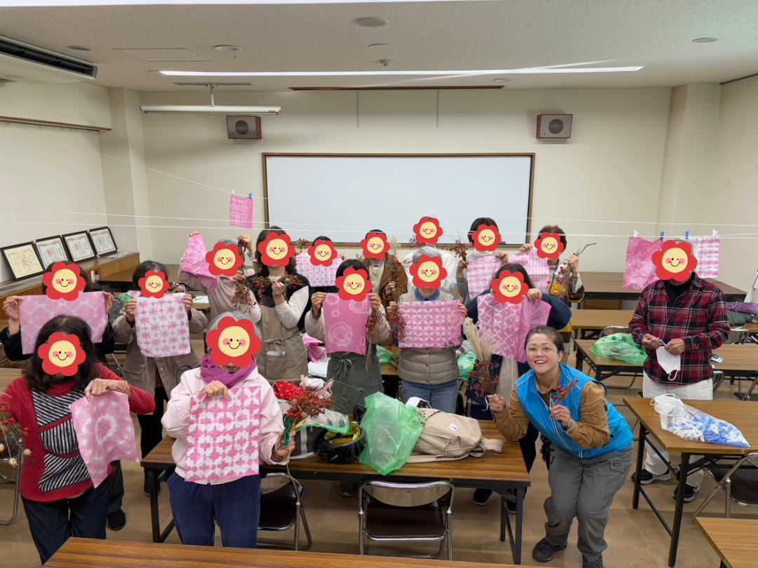 今年は、バラの花びらを使って染め液を作り和紙を染める「染め物体験」と、バラの実や園内植物を使った「ドライブーケづくり」を行いました!