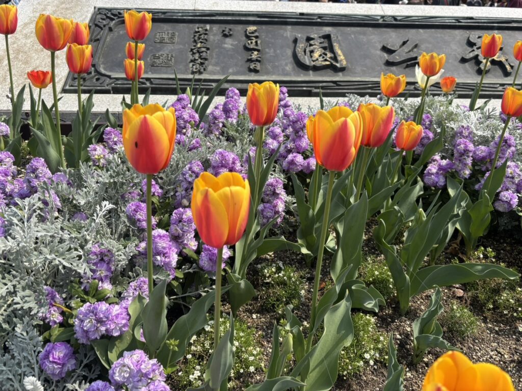 園内の花壇のチューリップが見頃を迎えています。