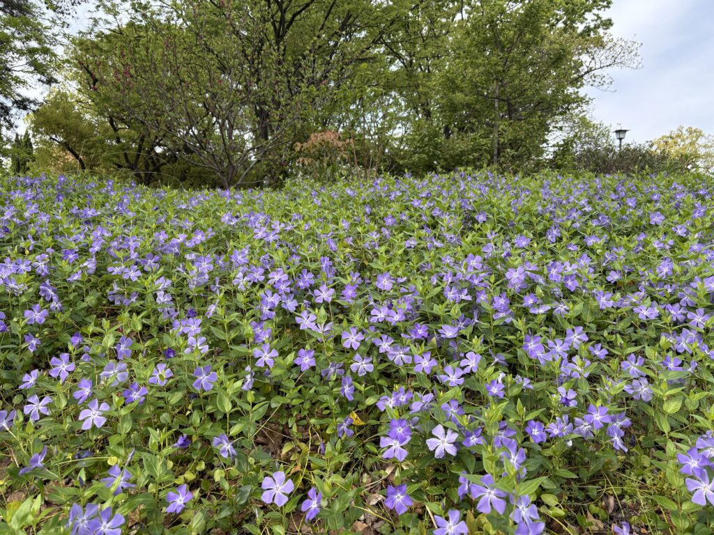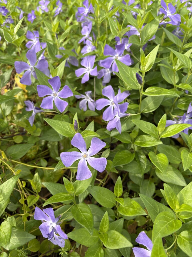 ツルニチニチソウは、春から初夏にかけて青紫色の花を咲かせます。