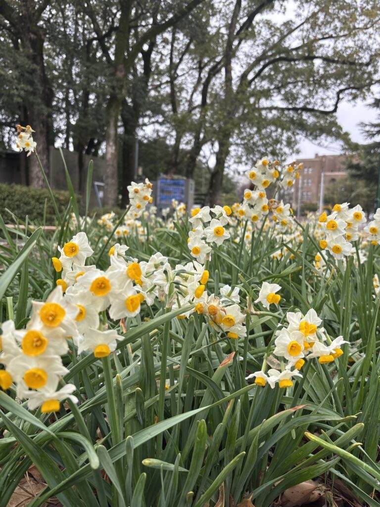 冬から、生命が躍動する春へと季節が移り変わる様子を感じられる花壇です。